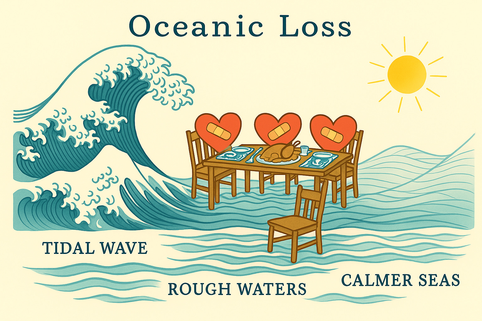 In “Oceanic Grief” (the grief model I published in my column of 9/6/25), there is an ongoing, fluctuating continuum of pain and acceptance. I name three phases: Tidal Wave, Rough Waters, and Calmer Seas. You can see a version of that model in the illustration for this column. What it sounds like is that you have reexperienced the initial Tidal Wave, and are currently in Rough Waters. Loss in estrangement is unlike any other: the person you are grieving is alive, well, and unwilling to share time with you. This contains a component of rejection that makes the grieving work uniquely challenging.